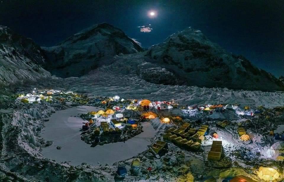 साँझमा Everest Base Camp सयौ आरोही र सहयोगीहरु