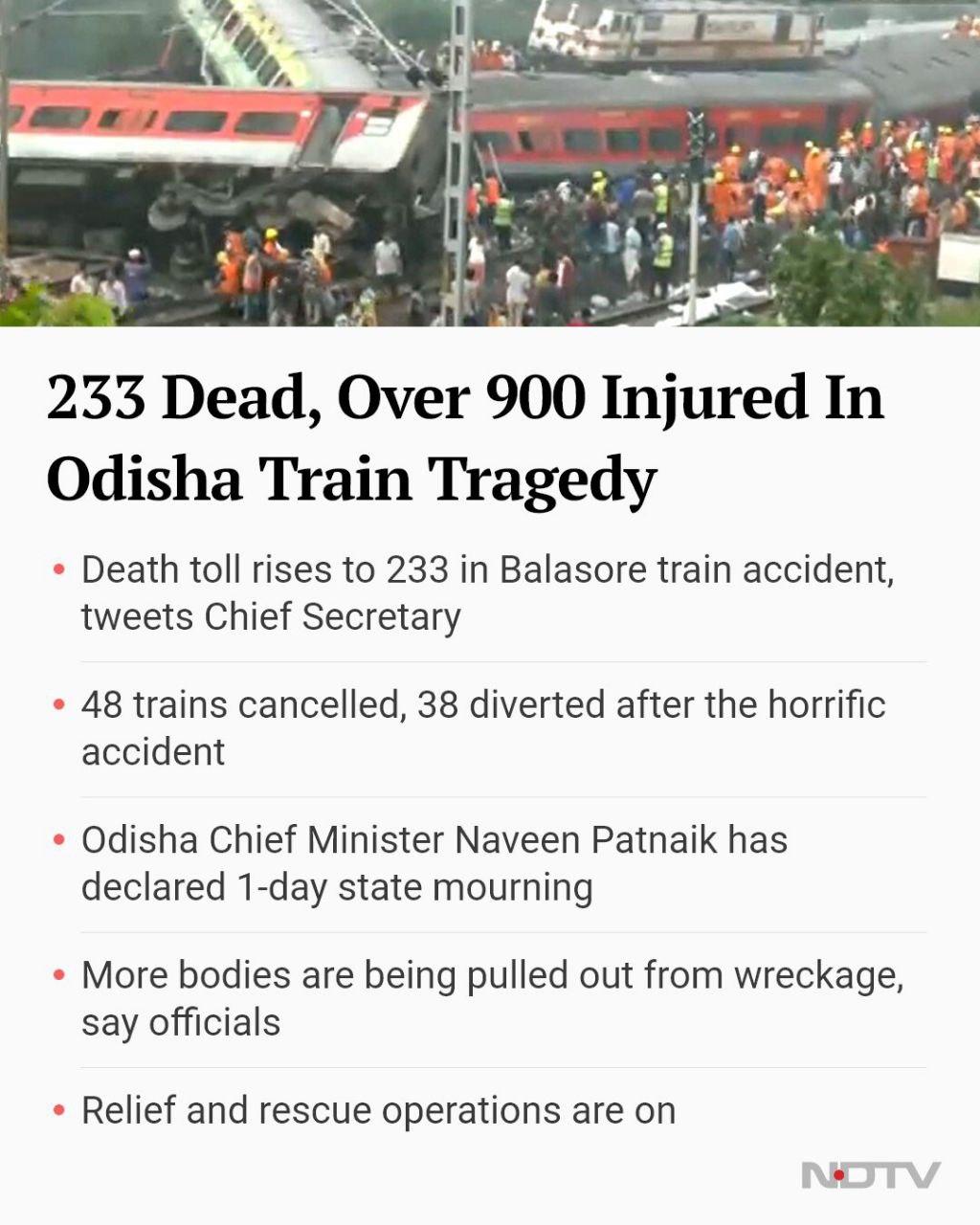 बालासोर ट्रेन दुर्घटना में अभी तक 233 लोगों की मृत्यु हो चुकी है