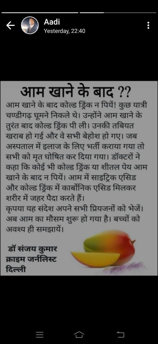 Don’t drink cold fizzy drinks immediately after eating Mango.
