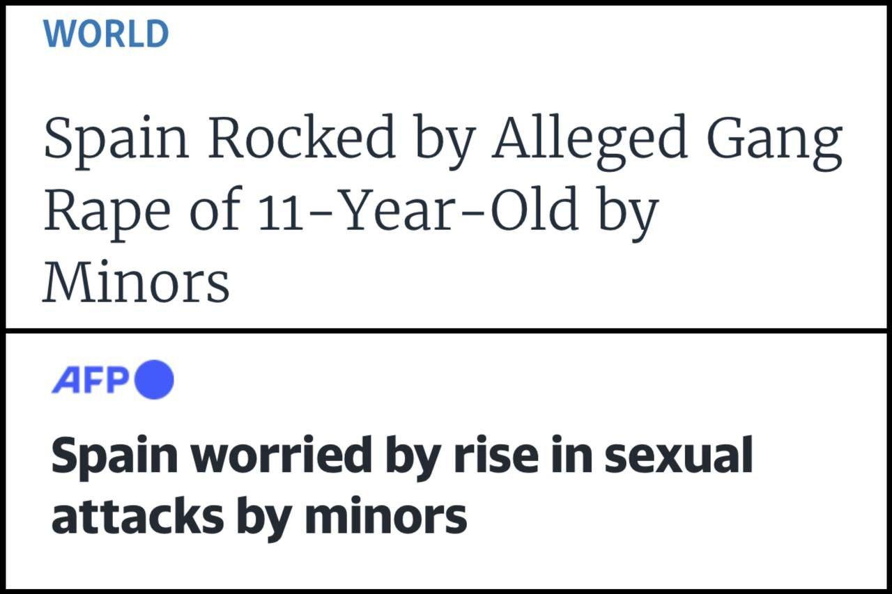 The rise in sexual assaults by foreign minors, including several recent gang rapes, has worried officials and experts, who blame ***********.🇪🇸Spain Spaniards worried by rise in sexual attacks by foreign minors after Spanish girl (11) was gang-raped at knifepoint The child was raped at in shopping centre toilets by four Moroccan Muslim migrants. Three of the rapists are under the age of 14 and cannot be prosecuted nor have criminal record — the other rapist (16) was temporarily admitted to a special centre for minors. The rise in sexual assaults by foreign minors, including several recent gang rapes, has worried officials and experts, who blame pornography.0 Comentários 0 Compartilhamentos 805 Visualizações 0 Anterior -